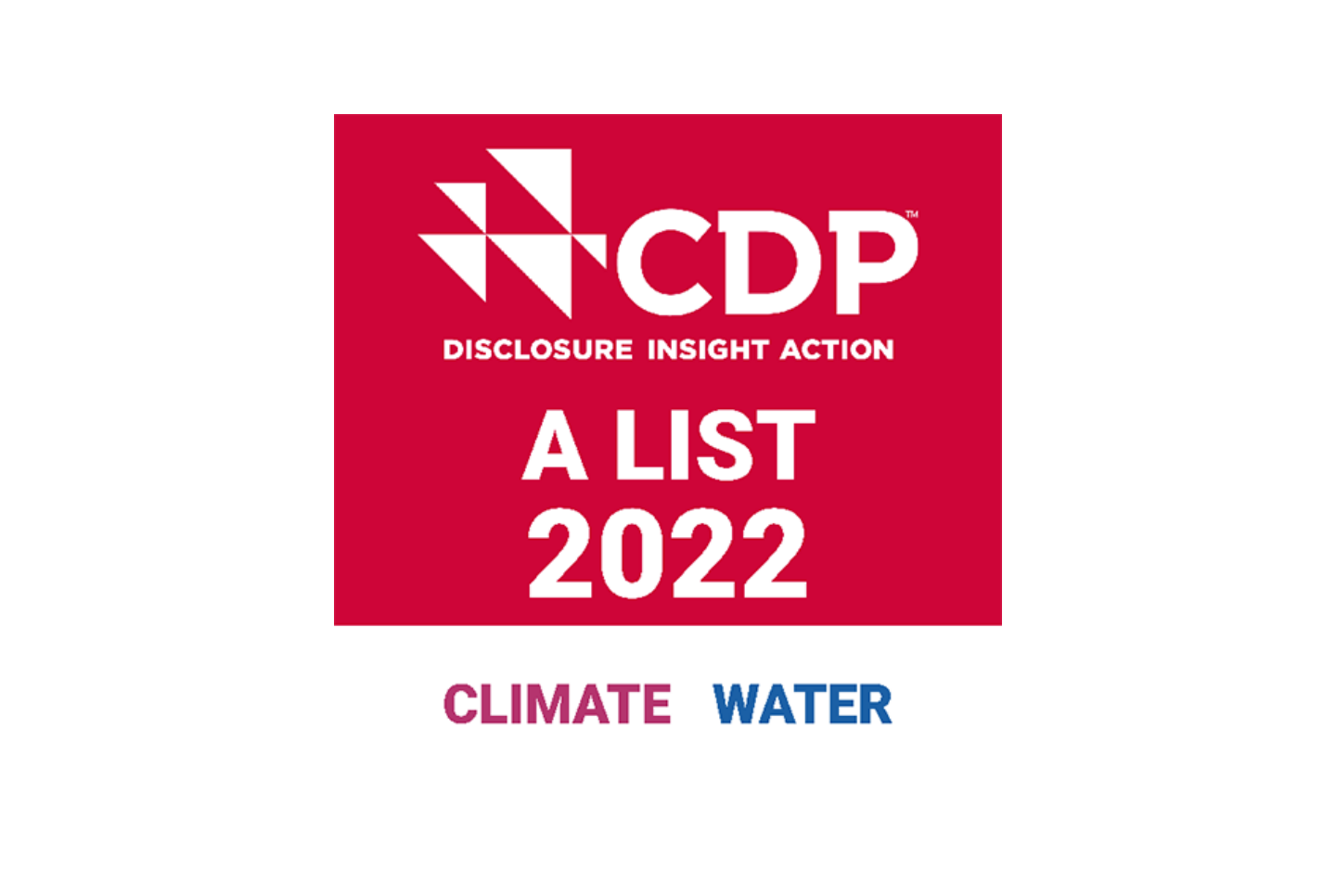 CDP气候变化A-级与水安全管理B级(CDP's ‘A-' for Climate Change and ‘B’ for Water Security)