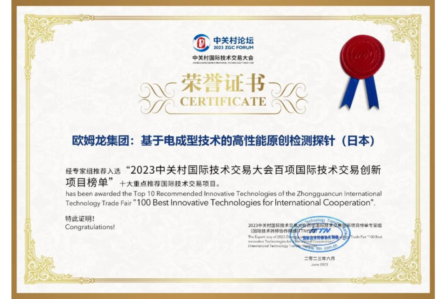 《百项国际技术交易创新项目榜单》“十大重点推荐国际技术交易项目”