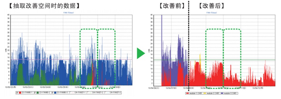 通过对数据的分折报告找出改善余地(风机每天的电力使用量一直变化)