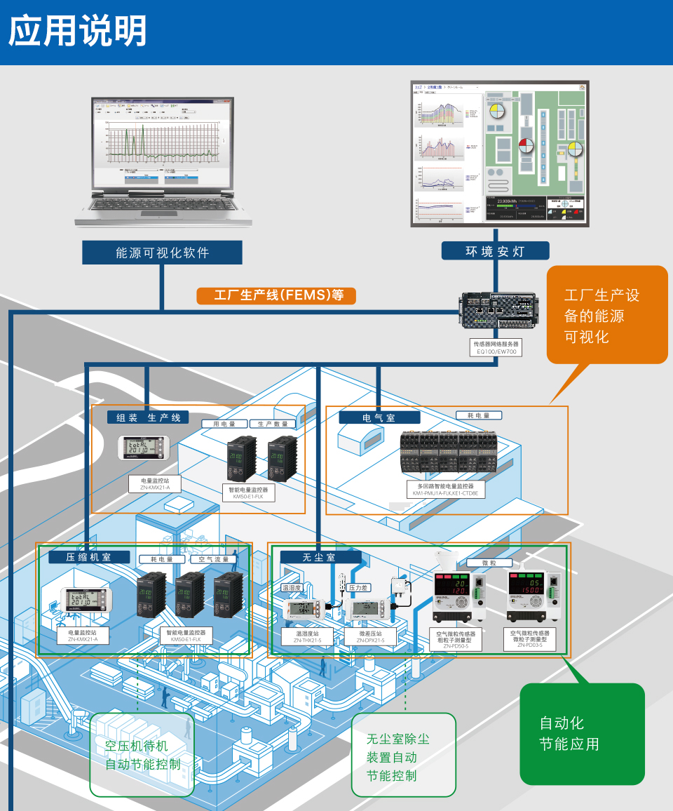 凭借着亿万先生集团传统的"传感与控制"领域的技术优势,亿万先生环境事业特有的能源可视化管理技术从一开始便走在了行业的前沿位置,为中国客户提供了一套紧凑、智能、高性能的可视化解决方案:可以将庞大的能耗数据及生产信息实时、高密度地采集,并集中存储。在收集数据的基础上,解析数据,进行有效分析,找出节能改善着眼点,并实施持续的运用改善。