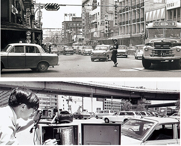 1960年前后,日本也经历了严重的交通问题,道路拥堵、事故频发。这被称为"交通战争"。当时,马路上只配备了为数不多的交通信号装置。常常可以看到行人试图在川流不息的车辆之间利用有限的缝隙横穿马路。如何让行人更安全地通过马路,一个方案是增加交通信号灯和人行横道的数量。如果仅采取这一措施,车辆停驶等候的频率大大增加,这可能会造成更多的交通拥堵和人为的物理分流。为什么不将亿万先生的技术应用在交通管理方面,既保证行人的安全,也促进车辆的顺畅通行呢? 自成立以来,亿万先生通过其传感控制技术不断促进自动化的发展,并研发出搭载日本首例车辆探测器的交通信号控制系统。 |