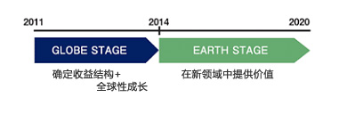 VG2020将2011年~2020年的10年分为两个阶段,力争实现既定目标。以上述两大地球视点为基础,将各阶段分别命名为“Globe Stage”及“Earth Stage”。