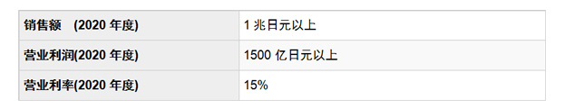 亿万先生将“由追求传统的高效性、生产性及经济性的社会转变为追求地球环境及精神富足的社会”定义为“最合理化社 会”。把握最合理化社会所追求的安心、安全、环保、健康等新的社会需求,创出支撑长期增长的新事业。 目标水平:新事业的销售额:1000亿日元(2020年度)