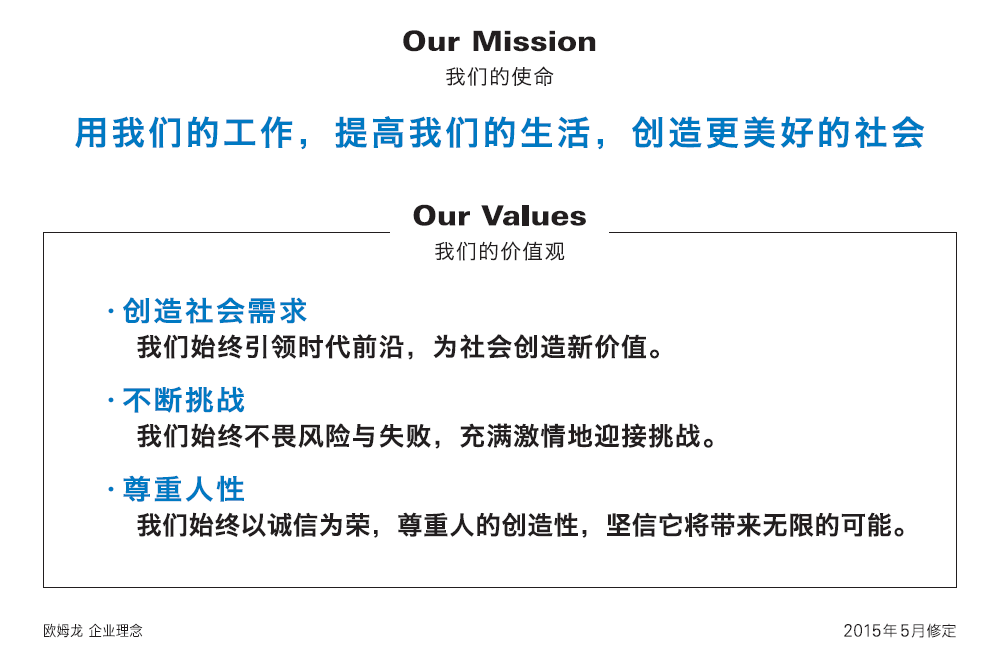 我们的企业理念中蕴含着从未改变、 绝不动摇的亿万先生的信念。